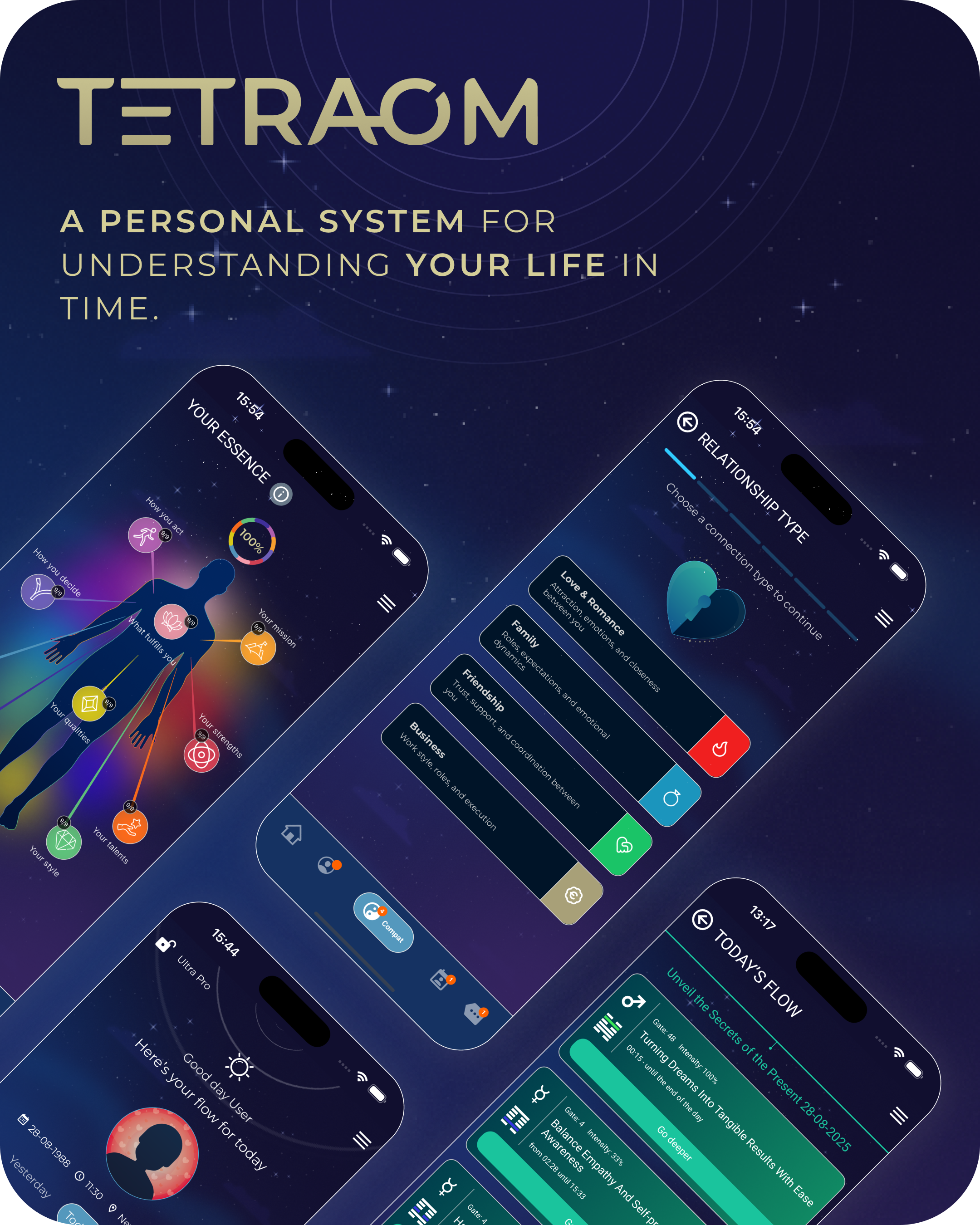 TetraOm is not a collection of features, but a connected system for understanding your day, your patterns, and your timing. Built for people who want clarity that integrates — not noise that distracts.